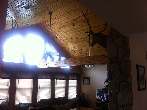 must see home , fully finished basement with full kitchen. vaulted ceilings , hickory cabinets . large yard ,huge deck ,1 acre stocked pond . 24x24 shed , 24x 77 heated shop . 32x32 attached garage. 32x40 heated garage . 1400 Acers of great public hunting just across the road.