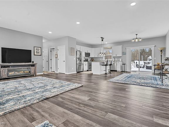 This Home was built by American Dream Homes in 2021. Very well maintained. Sprawling ranch offers all one floor living with an open floor plan in the kitchen, dining room and living room. The kitchen is spacious with granite countertops and stainless-steel appliances. Tons of cabinet space. Sliding glass doors lead to the newly built deck. Enjoy the sounds of nature as you sit on your deck and patio. Split floor plan with a master bedroom and master bath with a shower and a soaker tub, with a walk-in closet on one side of the home, with two additional bedrooms and full bath on the opposite side. Conveniently located laundry room on the first floor. Spacious basement could be easily finished, with a new backup generator installed with a sink in the basement. New leaf filter gutters in 2024. Freshly updated landscaping with trees planted along both sides of the property line. A MUST SEE!