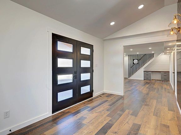 - Breakfast Bar, Built-in Desk, Ceiling Fan(s), Vaulted Ceiling(s), Walk-In Closet(s), Stone Counters, Eat-in Kitchen, Kitchen Island, Open Floorplan, Double Vanity, Stand Up Shower, Main Level Bedroom Suite, Great Room, Custom Cabinetry