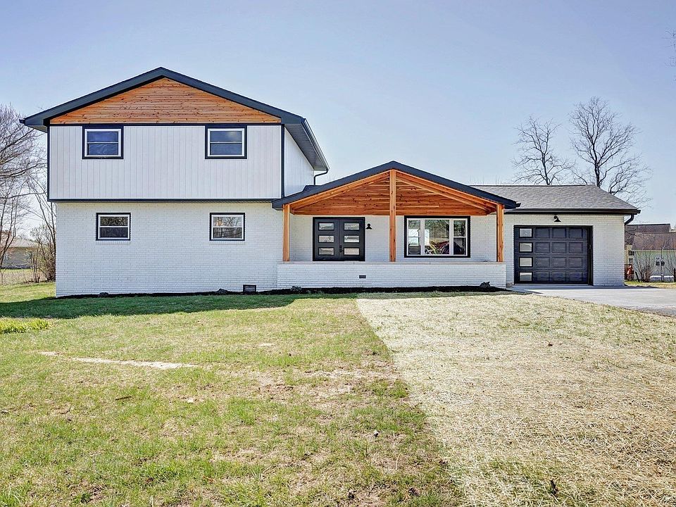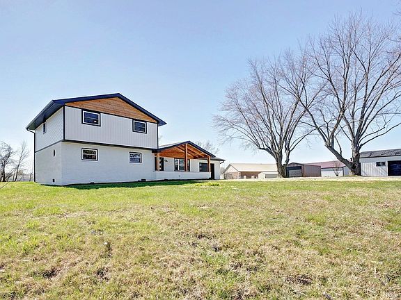 LOCATION, LOCATION, LOCATION is prime being easy access to 37/69. Tastefully renovated two story home 2K square feet with an acre lot. The seller has turned this home into a glam farm house. 4 bedroom, 2 1/2 bath, 3 1/2 car garage, large storage shed, laundry room on each floor. Everything brand new! Roof, windows, extra LED lighting, plumbing, electrical, custom soft close cabinets, flooring, all new vanities, 2 HVAC systems one on each floor. High end bathrooms and kitchen, which include granite tops, delta faucets, Kohler sinks and custom tile showers. Large closets with extra storage, built in computer area under stairs, all new garage door and openers, new concrete, built in fire pit on patio, fresh seed, straw and landscaping and a prepaid blacktop seal coat by Bloomington seal coat in April after the weather warms up.