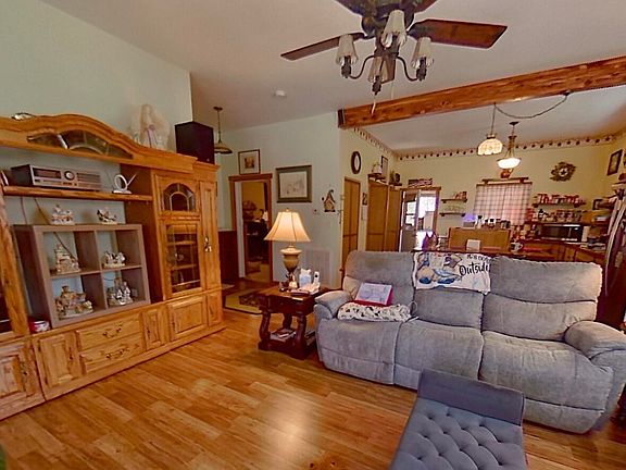 As you turn up the gravel driveway you will find the second home (3695) located to the right on the hill. This home features a detached 2 car garage with a loft. There are also 2 lean-to roofs coming off the garage. This is the perfect space to store firewood, equipment, vehicles, and many other items. There is also a sitting area with a working wood stove for relaxation or entertainment purposes. There are numerous ways to utilize this space. The home features a 1 bedroom/2 bathroom layout. As you walk into the home, you come through the spacious living room. There is a working wood stove in the corner for you to sit and relax after a long day. The kitchen is also very spacious with a small dining area. There is a bedroom with a bathroom on the main level. The bathroom is equipped with a jetted tub for your relaxation. As you venture upstairs to the loft area you will come to another full bathroom. This space would be used as an entertainment area or another bedroom. The front porch of this home as a gas grill and bar that stay with the home. There are endless possibilities!!!