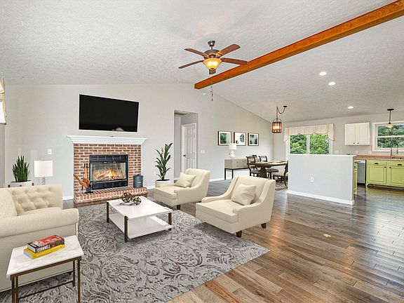This house has been beautifully updated and is move-in ready. Inside you will find an open and light filled floor plan with high ceilings, luxurious 2 year old Bellawood haversham hickory floors throughout, and a wood burning fireplace to enjoy in the living room. The master bedroom has tray ceilings and is very large. The views are gorgeous from all the windows and this house offers beautiful sunsets from the southwest located backyard. The total property has 9 beautiful rolling hills that make it feel so much bigger.