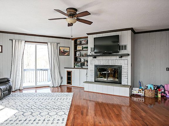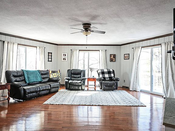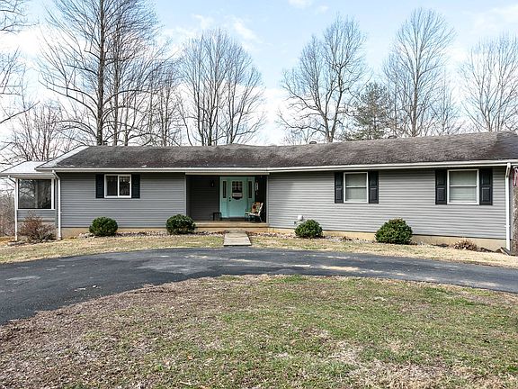 Peacefully secluded in the woods of central Kentucky is where you will find this charming 3 bed, 2 bath home sitting on a stunning 56.90-acre (+/-) spread of land! The home welcomes you into an adorable foyer that is highlighted by the farmhouse light fixture. The foyer leads you to the spacious living room that the whole family can enjoy. This cozy area is accentuated by the open masonry fireplace and enhanced with the built-in bookcase while the trio of windows shine on the beautiful hardwood and offer panoramic views of the calming woods. Next to the living room is a tremendous kitchen. The kitchen transitions to a soothing vinyl plank floor and is suitable to host large gatherings. It is also equipped with a plethora of cabinets including a large pantry cabinet furnished with sliding drawers. The vast amount of counter space is topped with sleek epoxy counters that are complimented by the subway tile backsplash... and you have your choice of sitting at the island breakfast bar or the dining area that offers another great view of the property. Making our way to the other wing of the home you will find a large utility room, 3 generously sized bedrooms, and 2 bathrooms. The primary bedroom has a walk-in closet, its own private bathroom, and sliding doors that give you access to the wrap-around deck while waking you up to an amazing view every morning! The spare bedrooms have more gorgeous hardwood and are serviced by another full bathroom. This renovated bathroom has a matching vinyl plank floor as the kitchen, a stylish vanity, and a handy storage closet. Teeming with potential is the basement that was in the process of being finished and just needs your final touches to bring it home! There are multiple rooms giving you options for an entertainment area, game room, storage, and much more! There is also a 2-car drive-in garage plus a cellar perfect for canning storage or a safe place during inclement weather. Outside you can enjoy the woods and wildlife it provides right from the screened in porch or wrap around deck. As an added bonus... there is a 14X20 barn right by the home! Now call to get the great outdoors in your backyard.