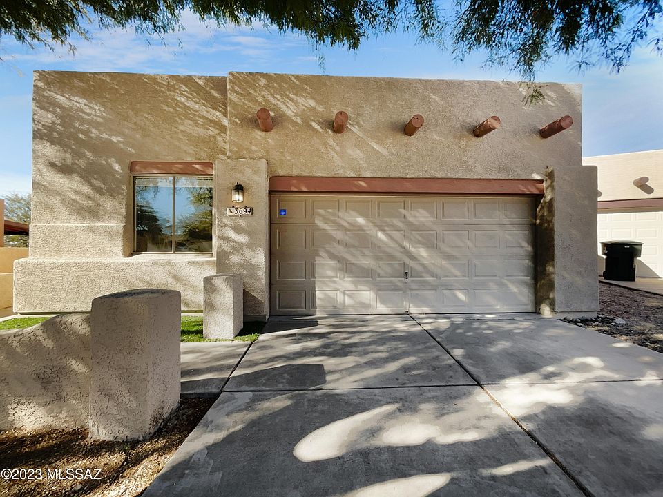 Your dream home is waiting for your in Tucson! This charming 3 bedroom, 2 bathroom Pueblo style home is now on the market! The kitchen boasts generous counter space, stainless appliances and beautiful custom cabinetry, making cooking and entertaining a delight. Entertaining is a breeze with this great floor plan complete with a cozy fireplace. Discover a bright interior with neutral tile/laminate floors, ceiling fans, high ceilings and open windows pouring in the perfect amount of natural light. The main bedroom boasts a private ensuite bathroom and spacious closet. This homes drought resistant front yard makes maintenance a breeze while the large fenced in backyard is a blank canvas just waiting to be created into your own personal oasis. Don't wait! Makes this beautiful home yours today!