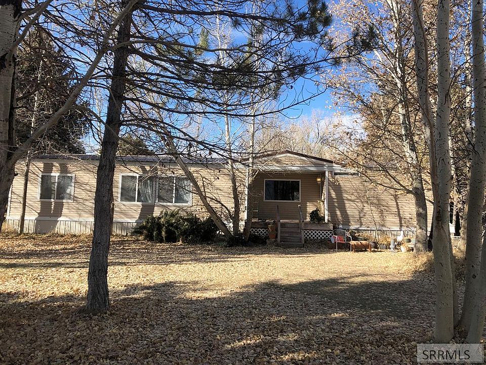 1 acre of mature trees like quaking aspens, pine, and more surrounds this property located just 10 miles south of Mackay. The 1980 manufactured home has had its plumbing replaced, a metal roof added, and vinyl siding added over the years. A propane stove offers supplemental heat in the winter. The home does need a little tlc on the inside but the property is an oasis of solitude. A nice long carport keeps the weather off your vehicle and give a bit more space to park your lawn mower or small atv. Private well and septic system on the property.