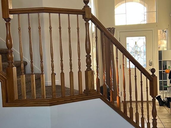 **PRICE REDUCED**Welcome to this Light and Bright home! Formal living just off tiled and spacious entry. Vaulted ceilings, and amazing windows create a grand feel. You'll love the tall stone fireplace in very open family room with 2-story ceiling, an updated kitchen (water purifier included) with corian countertops and tile backsplash, and a large main floor master suite with walk-in closet, garden tub and dual sinks. Open loft and 2 lg bedrooms upstairs with 2 more bedrooms in the lower level. Basement entrance and a huge yard with fruit trees, assorted berries and garden area, and close to everything...what more would you need?