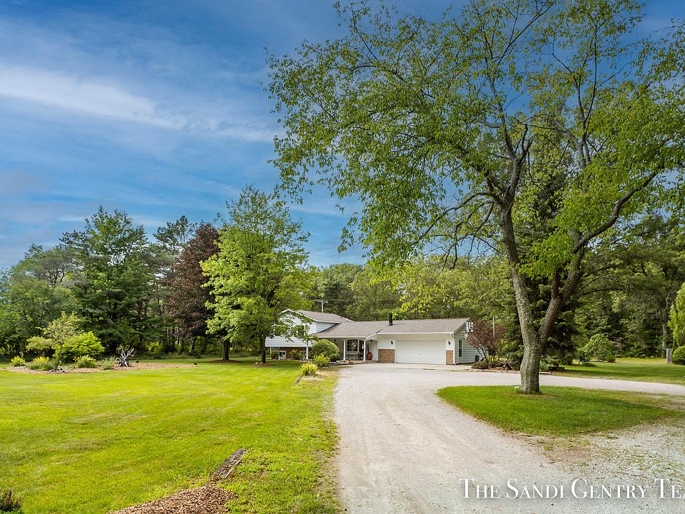 Nestled on nearly 5 acres, enjoy the privacy of this well-maintained 3 bedroom, 1.5 bath home. This beautiful property is full of mature trees, beautiful landscaping, wooded trail, firepit area, tons of open yard space, and 40x40 pole barn with 12 ft ceilings. The front covered porch is perfect to relax and enjoy the outdoors, as well as the deck overlooking the backyard. Inside the home features a living room with wood-burning fireplace, dining area with sliders to the deck, and kitchen with tons of counterspace and cabinetry. Conveniently located power room sits just off the kitchen. The upper level features the primary bedroom, 2nd bedroom, and large full bath with laundry. Family room, 3rd bedroom, and storage space complete the lower level. New roof in 2021. Schedule your tour today