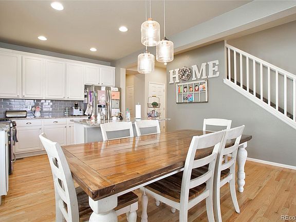 This beautiful home is located in the desirable Terrain neighborhood of Castle Rock. An open floor plan with lots of windows and vaulted ceilings provides tons of natural light. The main level features hardwood floors, den/study, laundry room, guest bedroom and full bath, gourmet kitchen with granite counters, large center island, gas range and stainless appliances, eat-in dining area, and great room with gas fireplace. The primary suite is also located on the main floor and includes a spa-like bath with an oversized shower, heated floors, and walk-in closet. Upstairs you will find two sizeable bedrooms, shared full bath, and an ample loft space, which would be perfect for a second office, rec room, or kids play area. The full, walk-out basement provides lots of extra storage or can be finished for additional living space. Relax or entertain on the upper rear deck or lower stamped concrete patio. Conveniently located near I-25, schools, shopping, restaurants, and downtown Castle Rock - and a short stroll to parks, trails and pools.