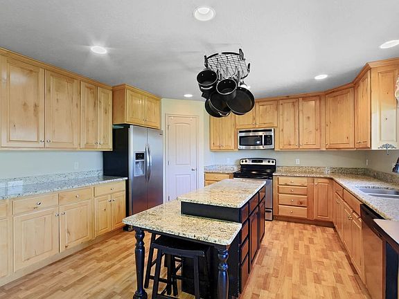 Beautiful home located right next to the golf course. Spacious floor plan, granite countertops, hardwood floors, vaulted ceilings with electric blinds, solar panels with backup batteries, and a newly finished 3 bedroom basement apartment. Plenty of parking and an RV port. Large backyard with large shed and play set included. Newly installed Tankless Water Heater, Water Softner and Radon Fan. Solar covers 110% of electric capacity. Home purchase will include a solar contract transfer.
