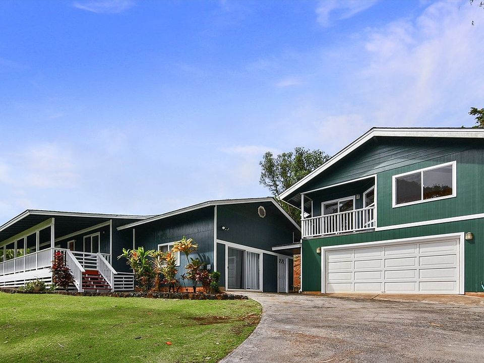 Great Opportunity to own a home centrally located between Kalaheo and Koloa on Koloa Road This well maintained property consists of a single level main home with 2 bedroom 2 baths and a bonus room with spacious covered lanai porch looking towards green landscape and a peak of the ocean. The additional dwelling unit is located above the 2 car garage with 1 bedroom, 1 bath, spacious kitchen area and open beam ceiling. Spacious lot of over 14,000 sq ft with fenced yard.