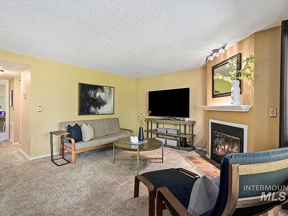 Idyllic tree-lined views set the stage for this centrally located condo with amazing proximity to Boise State University, downtown Boise and the airport! Situated for maximum privacy with no upstairs neighbors, the open-concept layout flows from the well-appointed kitchen and dining nook to a spacious great room complemented by a wood burning fireplace providing warmth and ambiance. Soak up colorful seasonal views of mature foliage from the covered balcony complete with dedicated storage closet. Generous bedroom features built-in bookshelves, space for a tech nook and direct access to the full bathroom. Enjoy a low-maintenance lifestyle with access to top-notch community amenities including a pool, hot tub, clubhouse, gym, racquetball court, water/sewer/trash service and Sparklight internet included!