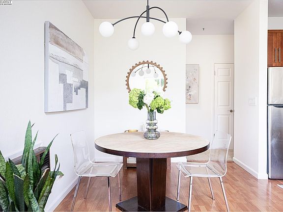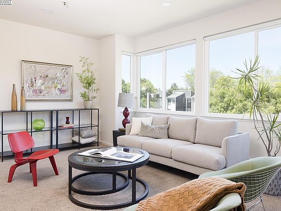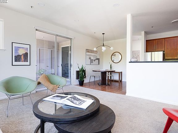 Nestled in the desirable Alta Mar Villas community, this exceptional two-bedroom condo is the epitome of modern living, basking in abundant sunlight. It has been stylishly renovated to include custom new windows, kitchen cabinetry, elegant dark countertops, and recessed lighting, embodying sophistication in every detail. The condo's layout is thoughtfully designed, with a versatile living and dining space that effortlessly flows into the balcony, promoting an exquisite blend of indoor and outdoor living. The primary suite features a contemporary bathroom and offers access to a west-facing balcony, inviting serene moments at sunset. Additionally, the condo features a convenient in-unit laundry room, which doubles as a spacious storage area. Exploring the Alta Mar Villas community reveals scenic fountains and a shimmering pool, enhancing the tranquil ambiance. Residents have exclusive access to the clubhouse and a fully equipped gym, adding to the allure of community living. Nearby markets, including Whole Foods, Target, and Trader Joe's, offer unbeatable convenience, while local gems like Central Park/Lake Elizabeth, the Alameda Creek Trail, and Quarry Lakes offer abundant opportunities for outdoor recreation.