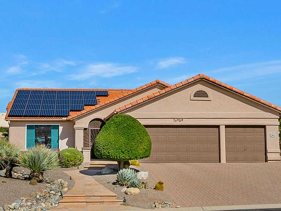 We are proud to present our One Story Galleria with many wonderful surprises for you. Here is your chance to own one of the most beautiful rear gardens in SaddleBrooke. Inside ceramic tiled floors, remodeled kitchen with cherry cabinetry, stainless steel appliances, walk-in pantry and granite countertops. New Super Energy Efficient Windows, Seller Owned Electric Energy S Saving Solar panels, 3 car garage, Freshly painted exterior & outstanding backyard for your entertainment & enjoyment. Gorgeous Oversized Pool adorned with sparkling rock water feature, gas firepit, built-in BBQ and hot tub. Placed in the middle of Professionally Designed Gardens with Mountain Views. This is one you need to see. The Galleria has a floor plan that is comfortable and casual for the SaddleBrooke Lifestyle.
