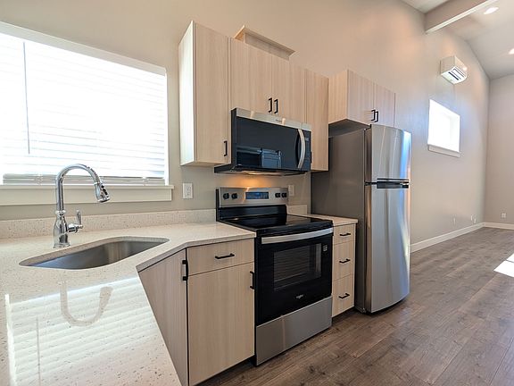 Brand new 2 bed/1 bath detached home with solid surface flooring throughout. This home offers an open floor plan, upgraded appliances and countertops and features tall ceilings. The 2 bedrooms share a large bathroom with double sinks and plenty of storage. Also included in this property is a large storage closet with a stackable washer dryer. Outside you will find a nice patio space, carport and additional storage. Northwoods will begin accepting applications for this property on 07/08/2025. The listing will remain active until an application is approved and/or a lease is signed. Applications for all Eugene properties will be processed on a first come first serve basis. Appliances/ Amenities: Stove/Range Refrigerator Dishwasher Microwave Washer/Dryer No Smoking No Pets No Co-signers 1-year lease term All utilities tenant responsibility Proof of renter's insurance required upon approval