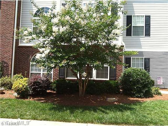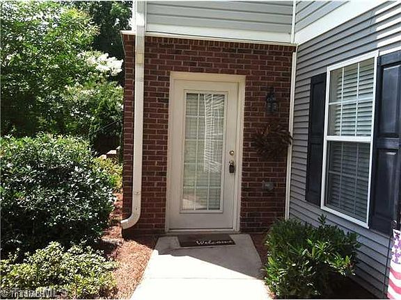Pristine ground level condo in NW Greensboro! Walk to park on bike on the Greenway! Natural light abounds in this end unit. Located next to protected common area for additional privacy. Two entries. Huge LR DR. FP W/TV niche. Built-in shelving. Kitchen with pantry; white cabinets, built-in mw; bar. Oversized master bedroom with walk in closet. NEW CARPET JUST INSTALLED! Washer; Dryer; Refrigerator to remain. Can be sold furnished. Security phone. Recently replaced all light fixtures and cabinet knobs.