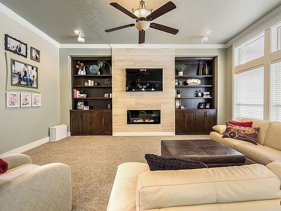 Totally upgraded in desirable Kingsbridge AND $2500 in closing costs! Spacious main-level master suite w/walk-in tiled shower, soaker tub & heated tile floors, stunning gourmet kitchen features gorgeous cabinetry, huge butcher block island, slab granite, pot filler, dbl ovens & SS appliances, Great room hosts beautiful built-in cabinets & sleek gas fireplace. Separate climate controlled work-out/flex room w/sound system (shop or 4th bay). Close to the brand new YMCA & new Hillsdale Elementary. Kitchen also includes farmhouse sink, upper cabinet lighting, appliance garage & pull out spice racks, spacious laundry room w/sink & laundry pass thru to master closet, mud room. Fully fenced East facing back yard w/garden shed, concrete curbing & covered patio make outdoors wonderful for entertaining. *Fabulous community w/ high end homes - Community pool, walking paths, parks & playground. BETTER THAN NEW!