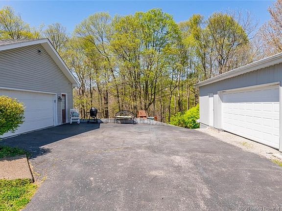 Nestled back a private drive on nearly 2 acres of wooded lot is this charming one-owner, 3 bedroom, 3 bath finished walkout located in desirable Floyds Knobs. Updated kitchen provides custom Aristocraft cabinets, large island, newer appliances (all stay including double oven). Lower level includes: 3rd bedroom with private access to full bath/possible 2nd master, bonus room, spacious L-shaped rec/theater room w/pool table that stays! Private patio with view of backyard has park-like setting. This beauty touts triple pane windows, geothermal heating & cooling w/steam humidifier, newly painted kitchen, LR, DR (2020), new roof (2018), gutter guard, 2 new hot water heaters (2018 & 2019), new garage door opener (2019), new carpet (2018) in upstairs bedrooms. Home features attached 2-car garage and 25x30 pole barn for added parking/storage. Beautiful country living, just 10 minutes to the hwy. Won't last long! Listing agent is related to seller. Surround sound equipment, swing set & garage refrigerator NOT included.