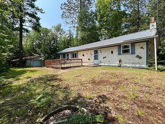 2-bedroom 1-bath stick built home designed for this .65 acre property that features 451’ of level East facing frontage on Wilson Lake! Grab your coffee and enjoy the beautiful sunrise on the huge waterfront deck that sits close to the shore! Inside you’ll find an open concept living, kitchen and dining area that all focus on the lake view! There is a full concrete block basement housing the forced air furnace, a shower and little workshop area. 16’x24’ garage with lean too for extra storage and an older screened in hut, great for cleaning fish as Wilson Lake offers fantastic pan fishing and an abundance of musky! Located in a great area, close to Trude Lk & the Turtle Flambeau Flowage for more water adventures, direct access to the snowmobile & UTV/ATV trails, on a town road & only 10 minutes from town. Home is winterized & being sold as is, water heater is new but not installed, some pipes are disconnected, unsure of reason.