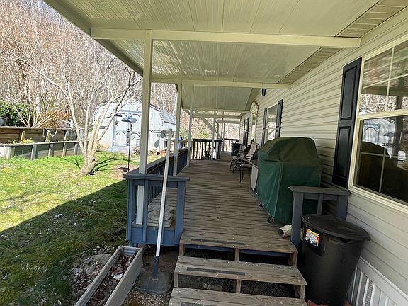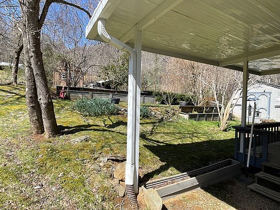 Over 150 Feet of Creek Frontage!!! Just west of town in the beautiful Cartoogechaye area, sits a property that truly enjoys nature with water falls & winding creek frontage, raised garden beds, & flowering trees on this amazing, landscaped property with a 2 bedroom plus den doublewide, workshop, & a studio. The home offers a large living room with newer laminate flooring, wood burning fireplace, large picture windows to enjoy the views of the gardens & landscaping & is open to the large kitchen & dining area. To one side is the primary suite, a walk-in closet, bathroom, & the convenience of laundry. The other side is the guest bedroom with a huge walk-in closet, the den, which is currently being used as a guest bedroom, & the hall bath. Outside there's a covered porch that wraps around the front & side of the home to enjoy the gardens, creek, birds, etc., steps that lead you to the workshop, the area of the raised garden beds, flowering trees, & the studio. Both the studio & the workshop have electricity. The property also 2 has double carports. Along the one side of the property you have the creek which you can enjoy all year round. Home is Not on a permanent foundation.