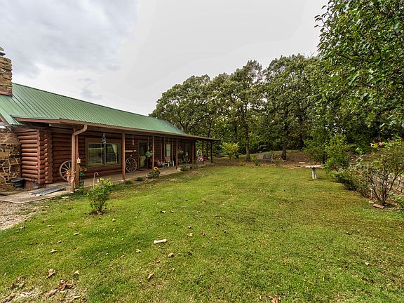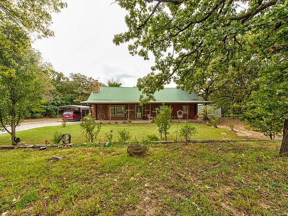 Fantastic true LOG CABIN home with 10 inch logs & 18 gauge metal roof. (no drywall) all logs on 5 beautiful acres with front & back porches. Kitchen was remodeled in 2017, 5 ton heat pump is brand new. Newer hot water, storm shelter. Home also has 30x40 shop/garage with electric & 220. It is insulated and built in 2008, also included is 20x10 shed. This home will qualify for Rural Development Loan.