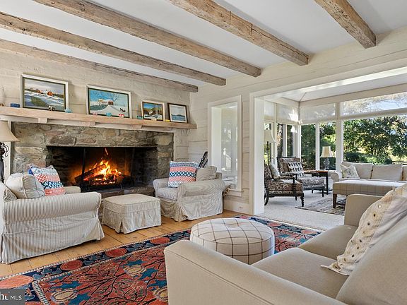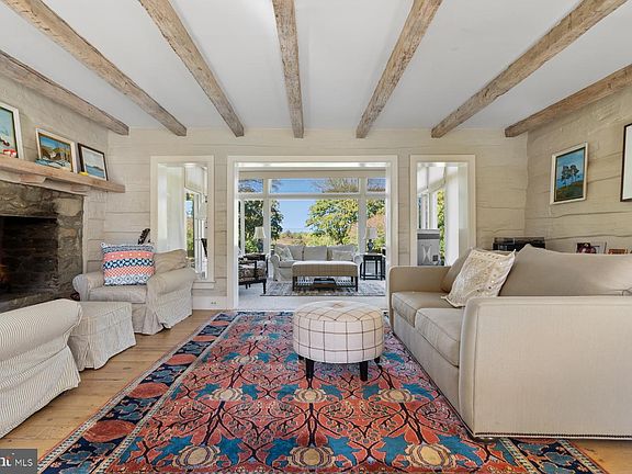 The charming and tranquil country home of Chailey is an 18th century log and clapboard home which through the years has been restored and expanded. Set behind a picket fence, the home and lawn is graced with low stone walls and wonderfully planted perennial gardens and trees. In the 1980's this was the personal retreat for the prominent interior designer Samuel Morrow, which he beautifully transformed and was featured in Southern Accents Magazine in 1986. This home gracefully blends with its surroundings with rooms opening to views, and terraces. As one enters into the living room (18' x 14’10”), the juxtaposition from the old to the new is stunning. The living room with exposed log walls, heart pine flooring and handsome stone fireplace w/ 8’ hearth is open to the sunroom (16’ x 12’). From the sunroom one can enjoy Blue Ridge Mountain views, garden views and access the stone terrace and gardens. To the left of the living room is the library (17’10” x 14’) with built in bookcases, walk in bay windows and a powder room. Between the living room and library, a stairway leads to the second and third en-suite bedrooms. To the right of the living room is the gourmet kitchen (15’6 x 12’6") with dove tail cabinetry, granite countertops, Sub Zero refrigerator and separate freezer drawers, 5 burner gas Thermador cooktop, 3 under counter ovens including a microwave, Miele dishwasher, and a deep stainless steel sink. The kitchen is open to the dining/breakfast room which features picture windows offering views of the gardens and pond. A door leads out to a covered terrace and the adjacent uncovered stone terrace; perfect for dining and entertaining. To the right of the kitchen is the laundry and mudroom, which was added in 2003. Access from the front as well as the back of the home makes this the main entrance from the gardens and greenhouse. Stairs from this area of the home lead to the second level which features the primary bedroom with private bath. The bath was included in the 2003 addition and features 2 vanities, a soaking tub, separate shower, and walk in closet. The grounds are lovely. As one crosses the lawn to the pool, barn, spring/green house and pond there is a sense of tranquility, history and permanence. The current owners have enjoyed the main level of the barn as a party and game barn for large gatherings. The pool and its charming pool house are beautifully sited to allow for privacy and relaxation. This property encompasses a sense of peace and beauty all four seasons. The 29 Acres of Chailey is currently in Agricultural Land Use with Loudoun County and also enrolled in New Mt. Gilead Ag Use through Dec. 6, 2025. The seller will not be responsible for Roll Back Taxes, if purchaser takes any of the property out of Land Use. Located between Middleburg and Purcellville, with easy access to Snickersville Turnpike, this area enjoys the quietude of rural life and the convenience of local villages and towns of western Loudoun, as well as Dulles International Airport.