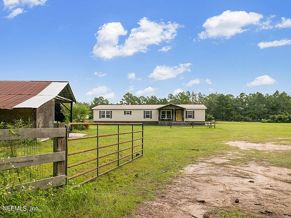 Country living at its finest! Don't miss out on this beautifully maintained 4/2 manufactured home situated on 5.96 acres. Walk out of your back door onto a covered porch overlooking the dock that leads right to a spring fed pond. This home features many extras, perfect for that outdoors life we all dream of. The barn located just off to the front of the home, has power for your animals and plenty of space. On the property you will find two pads for RV guest, complete with power and waste connections. This spacious home has a beautiful kitchen that is perfect for entertaining guests. While you cook, they can sit cozy by the fireplace. The oversized laundry room is great for extra storage and has space for all your everyday cleaning supplies. Call today for your private showing