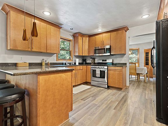 Beautiful home situated on wooded secluded lot. Custom updated gourmet kitchen, quartz countertop compliments maple cabinets with soft close. Expansive eat in kitchen and breakfast bar for entertaining. Kitchen extends into family room with brick fireplace and vaulted ceiling, slider leads to one of two decks from family room with brick fireplace and vaulted ceiling. Four seasons room features vaulted ceiling, floor to ceiling windows with beautiful views of private & wooded yard. First floor laundry, newly remodeled main floor powder room. New laminated floors throughout main floor. Primary bedroom with vaulted ceiling and walk in closet. Updated master bath with skylight. Partially newly finished lower level. Freshly painted and new carpet. Potential rec room, office, workout room, small dry bar. Roof 2021, heating & air 2017, driveway 2020, basketball court. Taxes to be determined, veterans exemption. Softener & water treatment system rental.