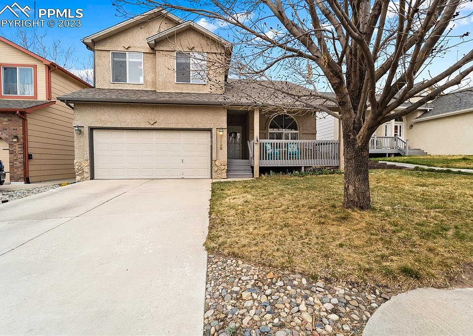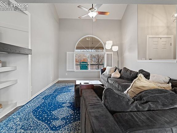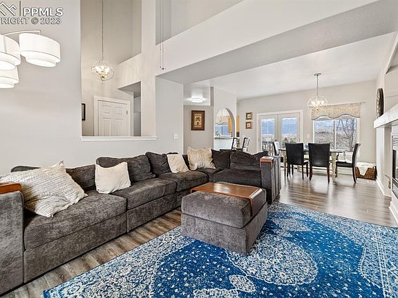 Welcome home, a stunning single-family home in the desirable Scenic View Estates neighborhood. This 4 bedroom, 4 bathroom property offers a comfortable and elegant lifestyle with ample space for families and guests. As you approach the home, you'll notice the charming covered front porch. As you enter, you'll be greeted by the open-concept living area with high ceilings and abundant natural light. The living room features a cozy fireplace and leads seamlessly into the dining area. From here, you can enjoy incredible views of Pikes Peak and walk-out access to the beautiful deck overlooking the grassy yard. The spacious kitchen is a chef's dream, featuring elegant marble countertops and plenty of storage space. Enjoy extra seating at the bar while entertaining guests or enjoying breakfast with the family. The primary bedroom is a true retreat, boasting vaulted ceilings, an ensuite bath with a walk-in closet, and ample natural light. The additional bedrooms are generously sized and offer plenty of space for guests. The basement is perfect for gatherings, with a great room offering tons of natural light and walk-out access to the garden-level patio. The 2-car attached garage provides convenience and security for vehicles and storage. The home's location is also a plus, within walking distance of the Templeton Gap Trail, vibrant parks, and local schools, with easy access to shopping and dining on East Filmore Street. Don't miss out on the opportunity to make this stunning property yours!