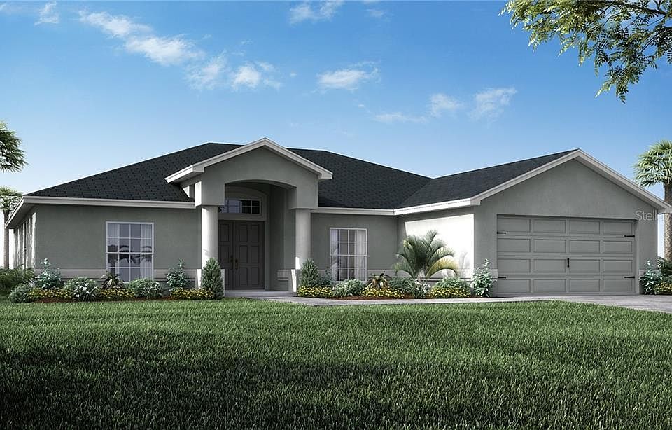 Under Construction. Parade of Homes award-winning Florida home plan by Highland Homes! A double-door entry welcomes you into the RemingtonIV! This home features a formal dining room as well as a casual cafe, breakfast bar, and a bright and open gathering room. Relax in the owner's suite with luxury bath including dual vanities, a garden tub, tiled shower, walk-in wardrobe, and closeted toilet. Split plan layout, for owner's suite privacy, Volume ceilings in the living area, Kitchen pantry, Dedicated laundry room Hall bath and linen closet conveniently located between secondary bedrooms, Pool door from the hall bath out to the lanai Covered lanai, Covered front entry with columns