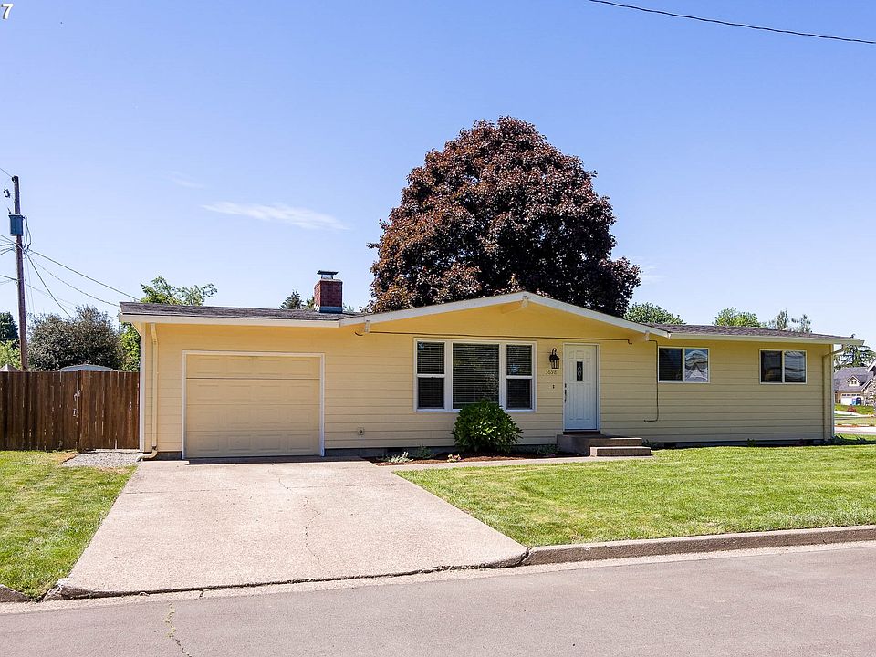 Single level living in desired Santa Clara Neighborhood awaits! Revell features hardwood floors, updated kitchen and bath, SS appliances, vaulted ceiling, vinyl windows and brand new ductless heat pump. Revell is situated on a sizable corner lot with a large fenced backyard, RV parking area, newer roof and siding, tool shed, raised beds, and LOW taxes. Come preview today!