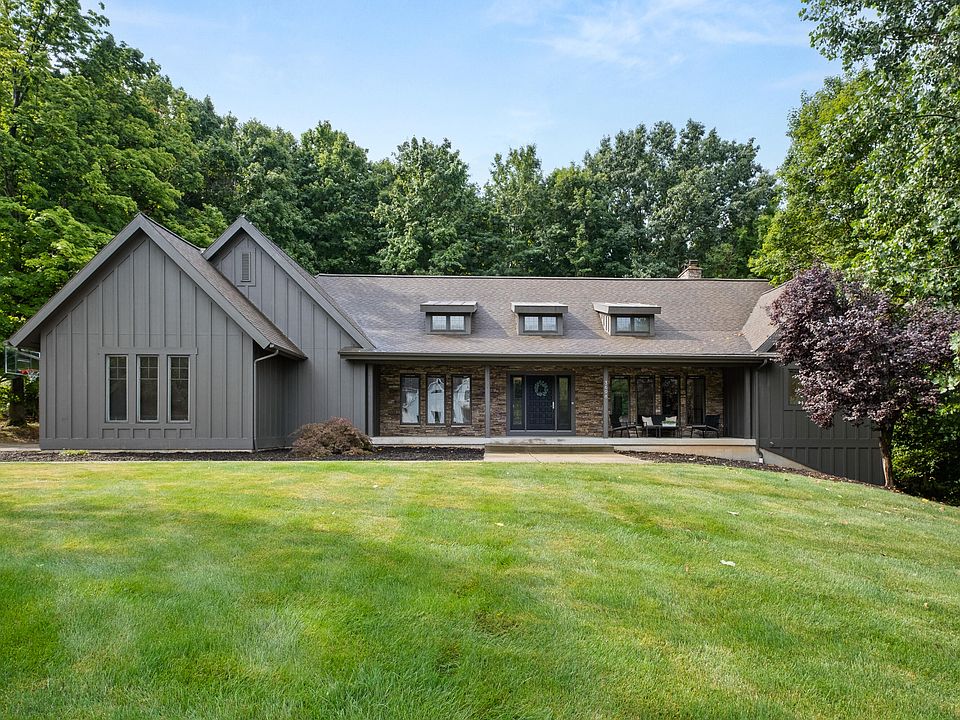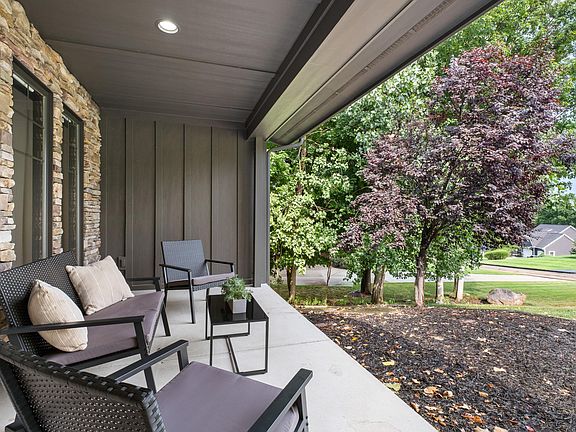 This exceptional Rockford home, nestled on a quiet cul-de-sac with picturesque rolling hill views, features a living room sure to impress with soaring cathedral ceilings, a striking fireplace, and floor-to-ceiling windows that flood the space with natural light.. The expansive kitchen features a premium 6-burner stove with griddle, a massive island, brand-new light fixtures, and a stylish wine display area that could also serve as an office or flex space. New remote-controlled window treatments on the northern front side of the home provide privacy with ease. Step outside to a full screened-in porch and deck overlooking the wooded lot and the 15' Michael Phelps swim spa. The updated mudroom boasts new custom built-in storage and leads to a finished bonus room above the garage, while the garage itself showcases newly installed epoxy flooring and upgraded lighting.
