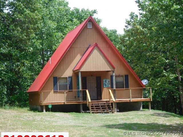 Charming Rustic A-Frame Cabin Near Grand Lake 'O the Cherokees - Escape to this beautifully refurbished A-frame cabin, just minutes from the stunning Grand Lake 'O the Cherokees & the Hi-Lift Marina area. Whether you're looking for a full-time home, a weekend getaway, or a cozy Vacation retreat, this cabin offers the perfect balance of seclusion & convenience. Nestled away from the lake's hustle & bustle, especially during busy holiday weekends, this peaceful retreat lets you enjoy the best of lake life without the crowds. Grand Lake is one of Oklahoma's premier recreational lakes, offering endless activities, from boating & fishing to lakeside dining & entertainment. Recently updated, this home features: Fresh interior & exterior paint, Windows and Roof have cedar trim, Durable laminate vinyl plank flooring w/cedar accents, Remodeled kitchen w/freshly painted cabinets, Modern walk-in shower, New water heater, Re-stained deck & new guttering. All furnishings are included w/a full-price or reasonable offer, making this a move-in-ready or rental-ready investment. Don't miss your chance to own this rare gem near Grand Lake at an unbeatable price! Close to restaurants, shopping, marinas, boat ramps, and the popular off-roading community in Disney, OK. Contact me for more details....