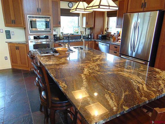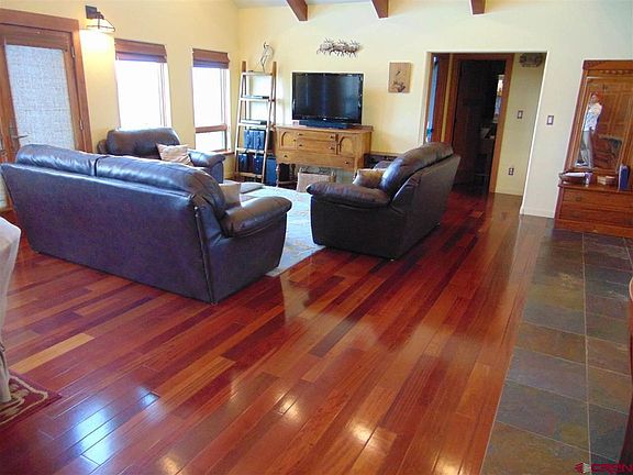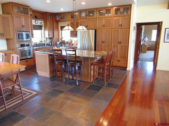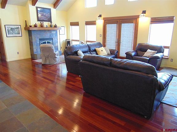Wow - spectacular views in this gorgeous 4 bedroom custom home overlooking the La Plata Mountains. Just minutes from town-this residence features all the best quality finishes . Brazilian cherry and slate floors, granite counter tops. A true chef's kitchen with gas range top and plenty of room to work and entertain.Stainless appliances, Bosch dishwasher, double sink and custom riff cut oak cabinets. Large, private master bedroom and elegant master bath with custom tile work. Wide open floor plan offers space and comfort throughout the home.. Upstairs gas fireplace provides a great spot for cozy relaxing. All bathrooms have zone- in floor heat. Walk out basement design offers a bright lit interior that opens onto a large flagstone patio. Upstairs living and dining sparkles with quality craftsmanship and attention to detail.Large picture style windows provide unobstructed mountain views. Double doors open out onto a sweet main deck overlooking the mountains and valley. Front and rear parking/entry.Minutes away from area reservoirs, trails and roads with the unlimited outdoor adventures offered in the San Juan National Forest. 35 minutes to Durango. NOTE: Seller owns and may be open to selling adjacent 1.8 acre parcel/one bedroom cabin