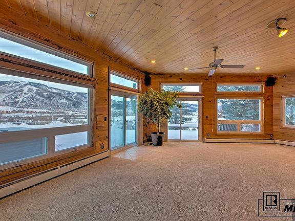 Great 4 bedroom + office, 2.5 bath house perched on top of a premier lot in the coveted Tree Haus subdivision offering tremendous views of the Steamboat Ski Area and Yampa Valley. As you cross the threshold, you immediately enter a beautiful living room fully encompassed by floor to ceiling windows and dual sliders leading to a huge deck with hot tub and a nice level yard area. New Lopi wood burning fireplace for added comfort and efficiency during our cold winter months. Large country style kitchen with a center island, tons of cabinet and counter space, a Sub Zero refrigerator and an adjacent dining area. New carpet, counter tops and plumbing fixtures. Newer windows, Bali blinds and rustic pine T&G wood paneling throughout. Over sized 2-car garage with lots of extra storage space and an additional 1-car metal carport. 0.73 acre knoll lot that offers amazing vistas and mature trees to create an absolutely beautiful setting. Whether for a primary residence or a vacation home in the mountains, this property has a lot to offer.