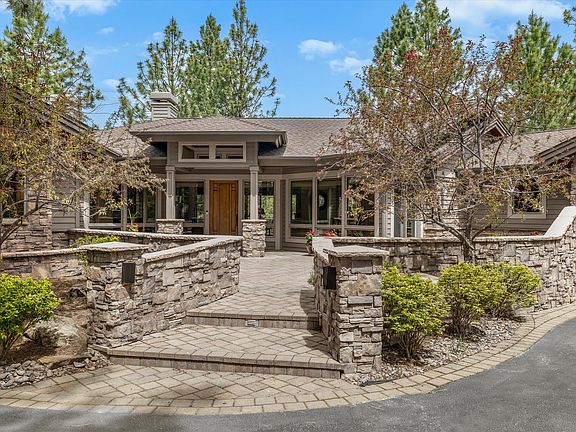 Welcome to your dream home in prestigious Awbrey Glen. Situated above the picturesque #13 Signature hole, this grand traditional residence exudes elegance & luxury at every turn. Constructed by renowned builder Steve Madsen, this home boasts exquisite custom finishes throughout w/gleaming hickory hardwood floors that guide you through the spacious layout. The heart of the home is the chef's kitchen, with granite counters, upscale stainless appliances, pantry, & a casual eating area perfect for morning coffee or informal meals. Entertain guests in style in the formal dining room or unwind in the inviting living room, complete w/a large gas fireplace for cozy evenings. The main level features the primary suite w/gas fireplace, dual vanity, walk-in shower & a dedicated office w/built-in cabinets & desk. The finished lower level features 2 guest bedrooms, each with their own full bath, family room w/gas fireplace, wet bar, walk-in wine cellar and much more.