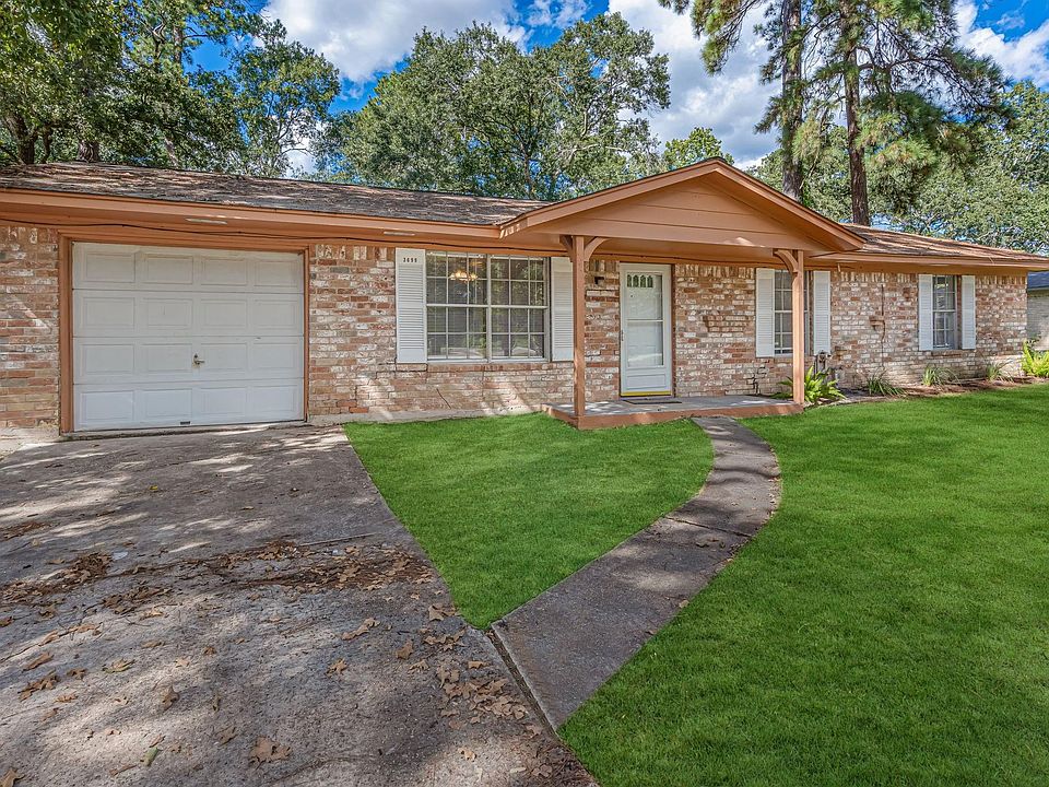 NO CARPET. Nestled in the peaceful and serene subdivision of Piney Point in Conroe, this lovely 3 bedroom, 2 bath home is ready for move in! Beautiful laminate flooring throughout! All new Kitchen countertops and fresh paint throughout the interior of the home. Bath also has new tub with surround and new vanity. Beautiful back yard for entertaining family and friends. Mirror will be added soon. Some work still in process. Room dimensions estimated, please verify if important to you. Schedule your showing today!