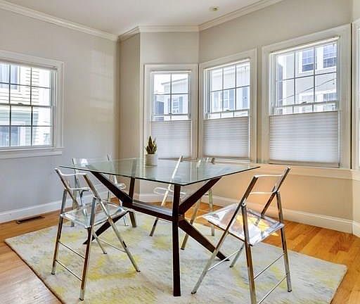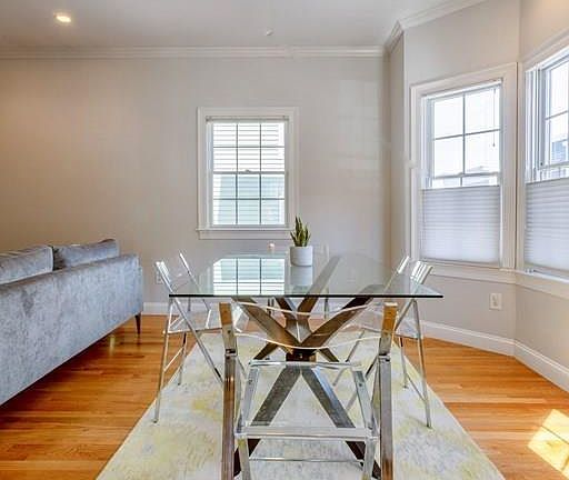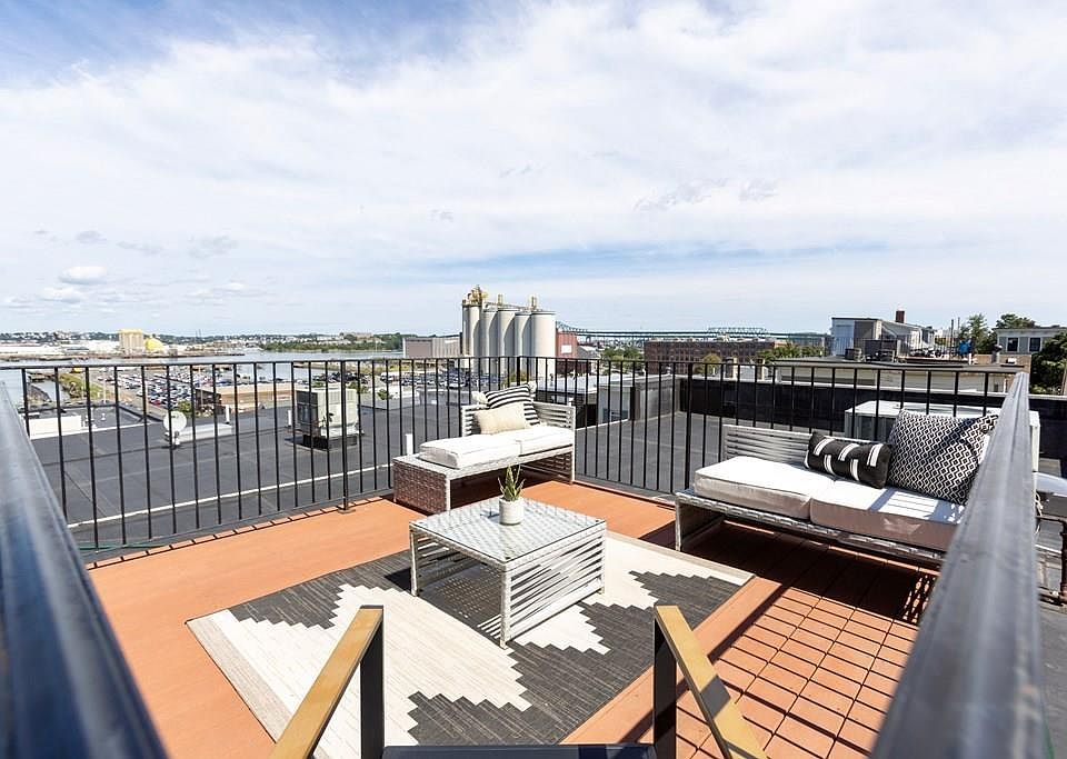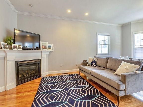 Convenient to all Charlestown has to offer on beautiful Belmont Street ... 2 bed/2 full bath, central air, drenched in sun light! Kitchen features s/s appliances, granite countertops, and corner exposure. Open layout with sizeable, dining area and spacious living room featuring a gas fireplace, crown molding and hardwood floors throughout, as well as in unit laundry. Both bedrooms have generous closet space. A PRIVATE roof deck with unobstructed WATER VIEWS complete this unit!