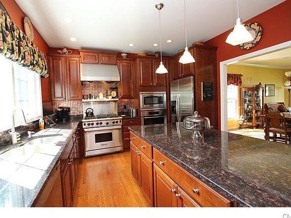 Situated on a half acre in a private cul-de-sac this center stair colonial has an open floor plan& an extended deck; perfect for entertaining.Built in 2007, the kitchen features a 7ft island, Wolf gas range, stainless steel appliances, tiled backsplash, under cabinet lighting & granite counters. 9ft ceilings & oak floors on the first floor w/gas fireplace and true surround sound in the family room.Upstairs youll find four bedrooms and two full baths.The beautiful master bedroom suite has a walk-in closet & tray ceiling. A large masterbath w/soaking tub and stand alone shower. Huge unfinished basement with 9ft ceilings. Central air, central vacuum, propane heat, whole house stand by generator, and irrigation. Minutes from i84 and shopping.