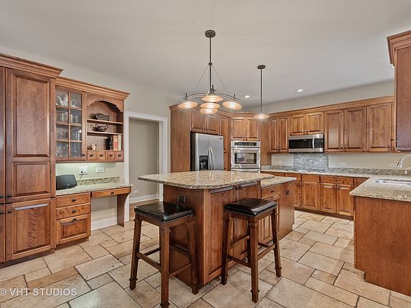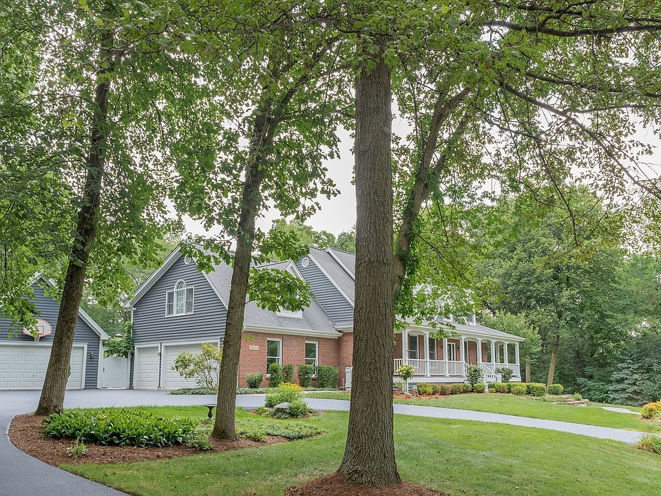 Custom Quality Bellefleur Built home on most exceptional property in 60174 area code. Located within 2 miles of historic downtown St. Charles. Nestled on 2.6 acres including the property across the street. Backs up to forest preserve acreage offering complete privacy! Large front porch greets you and is a relaxing spot to enjoy the wildlife. 2 story foyer leads to an excellent flowing floor plan. Vaulted Great Room with floor-to-ceiling stone fireplace and stunning views of private woods. 9' ceilings, elaborate trim and moldings. Tastefully decorated and updated with beautiful hardwood floors throughout. 1st floor bedroom is currently being used as a home office and has direct access to full bath (potential in-law arrangement). Kitchen boasts furniture grade custom Cherry cabinets, granite countertops and stainless steel appliances. Remarkably large island is perfect for gatherings. Upstairs offers 4 BR's, 3 BA's and laundry room. New carpeting in BR's. Private Master Suite feels like a luxury hotel! The Finished English Basement has an abundance of natural light. Dry bar, Rec room, Game room and Billiards area for entertaining. Additional 6th BR (or exercise room) and 5th full bath is perfect for out of town guests. 4 season sunroom with heated floors leads to outdoor patio featuring 2nd fireplace, hot tub, and authentic pizza oven. 5 CAR GARAGE SPACES! Detached heated 2 car garage used as a shop also built by Bellefleur is great for any hobbyist. Outdoor living space also includes a large Trex Deck with waterproof barrier underneath creating storage below. Private trails running throughout property are used for hiking and ATV fun. Make sure to stop at the 2-story tree house and secluded back bonfire pit! This is the perfect home, property and location!