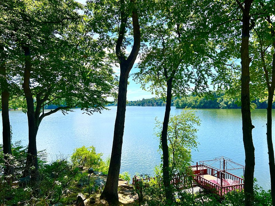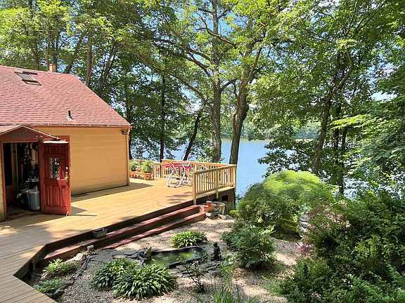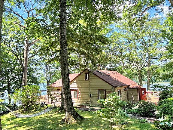 BOAT! SWIM! FISH! "SHANGRI-LA" Nestled in the woods on one glorious "ACRE" overlooking beautiful "KIRK LAKE" (Motor-boating) this 2-story home features 227' of delicious prime lakefront with distant views and "SUNSETS". This home is surrounded with miles of new decking, (great for outside entertaining) walkways and a boat dock. Inside features a natural knotty pine living room with cathedral ceilings and a large stone f/p, 2 bedrooms w/loft area (possible 3rd bedroom) family room and a large eat-in-kitchen with lake views. Close by there are 2 Golf Courses, multiple tennis courts and a 50-mile bike path. Privacy, woods, lake and just one hour to NYC. If you love boating, swimming, fishing or just looking at the calm blue waters, please call us to schedule an appointment. Credit check and rental application required.