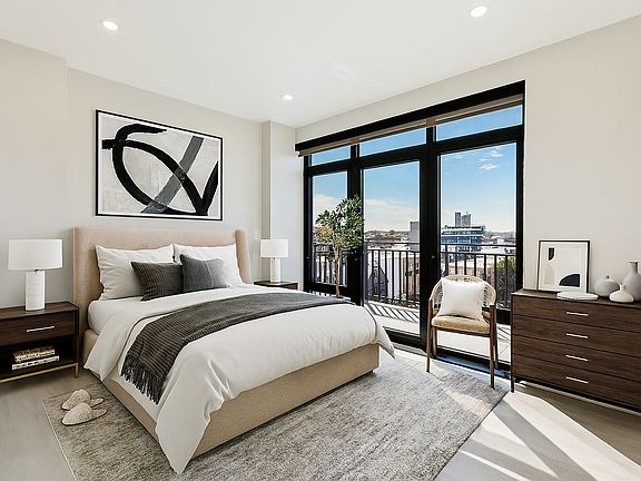 Penthouse 501 offers 846 square feet of thoughtfully designed one-bedroom living including both a private balcony and terrace offering stunning Manhattan views. Floor-to-ceiling windows bathe the home in natural light, while soundproof construction ensures a quiet, peaceful retreat from the city. The open-concept layout features high-end finishes throughout, including a sleek chef's kitchen with stainless steel appliances, a contemporary bathroom with a glass-enclosed shower and illuminated vanity mirror, and a well-proportioned bedroom with generous closet space. Central heating and cooling provide year-round comfort. The building welcomes residents with an elegant lobby featuring video intercom and keyed access. An elevator connects each floor to a beautifully furnished roof deck with panoramic views of the Manhattan skyline, perfect for relaxing or entertaining. Additional conveniences include a laundry room, bike storage, and pet-friendly accommodations. Perfectly located on Broadway in the heart of Astoria, 37-18 Broadway offers immediate access to neighborhood favorites such as Brooklyn Bagel & Coffee Company, Sweet Afton, and Ovelia, as well as multiple grocery options including Trade Fair Supermarket. The N/W trains at Broadway Station are just a few blocks away, offering a quick and easy commute to Manhattan while allowing you to enjoy Astoria's vibrant dining scene, boutique shopping, and charming tree-lined streets.