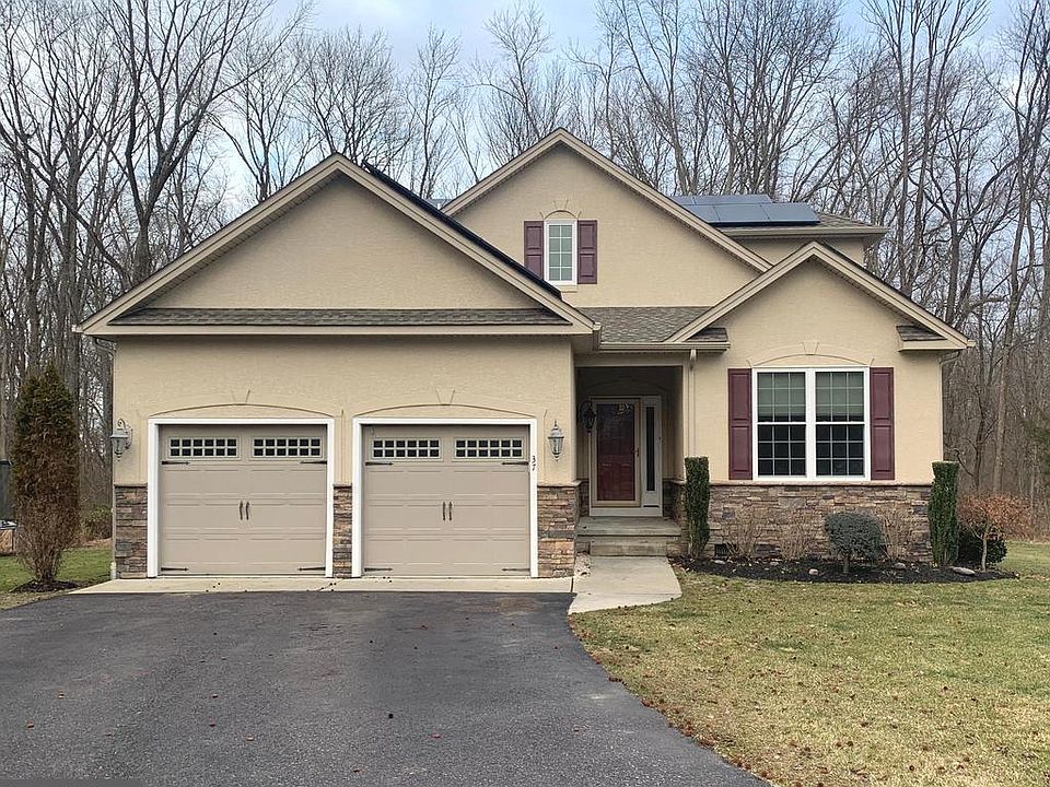 Perfection is this 5-year old home with every amenity. Right in the heart of Marlton/Evesham Township - Located in a private one acre setting!! This home has what you're looking for from Top to Bottom. Situated in a tucked-away neighborhood of newer and newly constructed homes. Put this one on your list if you like to come home to your own beautiful and serene haven. Enter through the front door to be greeted by gorgeous hand-scraped solid hardwood floors in the foyer which will take you all the way into the family room. Here you will find a magnificent stone fireplace and sliders to the glorious outdoor view which overlooks your very own dreamy forest in the best part of Marlton! Step out onto the maintenance free deck - breathe in the fresh air and take in all the privacy. The kitchen is made for entertaining and easy navigation with upgraded cabinets, granite counters, marble back-splash, full stainless-steel Electrolux appliance package, double ovens, gas range, walk-in pantry, and an enormous island with enough seating for a small country! If you happen to be a little too tired to head up to bed after your fantastic meal, NO PROBLEM! Just mosey on into your Lavish 1st Floor master suite! Rest those muscles in your jetted tub or hop in the large walk-in marble shower with dual shower heads. The upstairs is home to 2 large rooms adjoined by a full bath and walk-in closet. One of the rooms is the 3rd bedroom, one is a large finished space that can easily be used as a 4th bedroom if desired. This home has a versatile floor plan... the first floor study could could be used as a bedroom as well. To finish out the house, there is a first floor laundry room leading to the 2 car garage with openers... high efficiency solar panels placed in optimal areas, for electric savings! AND.. the home is adorned with high-end stereo speakers throughout, including the deck and garage. Come see this one quick!