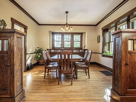 Welcome to this impeccably maintained 2-story home filled with character! Nestled on a private fenced corner lot and walkable to quaint and historic downtown Hopkins offering, breweries, wineries, antique shopping, arts, theater and so much more! Country porch is a warm welcome to guests and a special place for entertaining or relaxing. Dining room boasts old world charm with well-preserved built-ins, crown molding and solid hardwood floors that flow gracefully to a spacious living room. Quality kitchen cabinetry and convenient backdoor to the garage. 3 spacious bedrooms on one level. Primary suite offers dual closets and charming private balcony. Refreshingly updated bathroom! Lower-level lives like an additional 500 finished sq ft! New furnace. Oversized 2 car garage with concrete driveway is a huge plus!