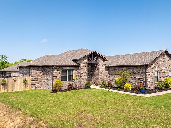 Like-New Brick Beauty on a Corner Lot! This stunning all-brick, maintenance-free home offers modern elegance and thoughtful upgrades throughout. Enjoy a welcoming front porch with wood-stained beams, extra landscaping, and a Ring camera for added security. Inside, the open-concept layout features luxury vinyl plank flooring, crown molding, and a designer tile fireplace with wood-stained mantle and wood stained Beam lined coffered ceiling. The gourmet kitchen boasts a 9'2 x 3'5 granite island, custom cabinetry, GE stainless appliances, a cozy coffee nook and 3 walk-in pantries. The spacious master suite includes a tray ceiling, a huge 15' x 8' walk-in closet, and spa-like bath with a tiled walk-in shower and garden tub. Two additional bedrooms, a stylish hall bath, and ample storage space. Outside, relax on your covered back or side porches, or enjoy the huge fenced backyard with extra storage. Additional features include a 2-car side-load garage with insulated doors, built-in mudroom locker area, and premium lighting throughout. A true move-in ready gem!