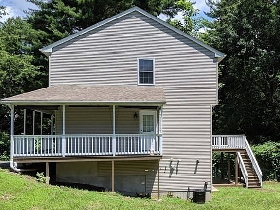 Entertainers Paradise! All the bells & whistles. Private, open flow, large rooms. Remodeled kitchen & bath. Eat-in kitchen/dining room combination, garbage disposal, double sink, extra lighting, sliders, newer stainless steel appliances (2019), & high ceilings. Plenty of lighting and sunlight. Ceiling fans, newer wall to wall carpet, new continuous vent fan in master bath. Large finished walk out basement with surround sound, utility room, and storage. GE & Samsung appliances. Central air and Nest thermostat, security system. Oversized elect.panel. Sliders to upper deck, deck below and concrete patio, from walkout basement. Wrap around porch. Solar activated lites outside. Woods behind house cannot be built on. Direct TV and 1g internet. Private well & water softener. NO WATER BILL! Recently insulated by MassSaves. "Smart Key". Newer well tank, and water softener. Forced hot air. Closets galore. Bathroom heating fan. Some attic space. Video monitoring in place.