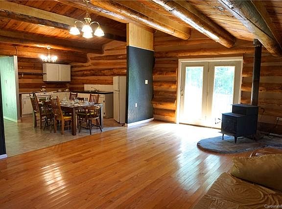 Authentic Log Cabin; Home features vaulted ceilings, pine wood floors in living room, 2-bedrooms on 0.92 acres; built in 2001 with 40 ft poplar logs, block foundation; Home offers a real sense of Pioneer Adventure and is located in a great area for outdoor lovers- Mountain excursions-stimulating activities and adventure near Fishing Streams, Hiking Trails, 2-Great Golf Courses; This mountain hideaway is ideal for you and your family and can be used as an Air B&B; could possibly sleep 6 to 8 persons; Owner Financing with good down payment: