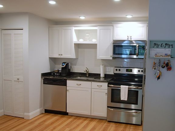 This two bedroom one bath condominium unit is on the first floor which is nothing but convenient. The overall style is set in white and grey tones which complements todays designs and is only enhanced with the natural wood tones of the flooring throughout for balance. The upgrades for everything has been well thought out and tastefully completed.