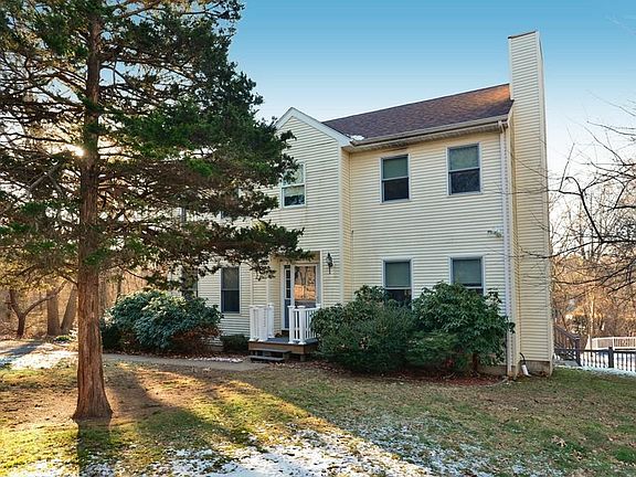 Enjoy easy access to the highway as well as 1.72 private, wooded acres with this 3 bedroom, 2.5 bathroom colonial home. This one owner home has been well maintained and is looking for a new family to enjoy! Relax in front of the gas fireplace in the living room, or enjoy a cup of coffee on the back deck overlooking the private back yard. This home has recently had a new roof installed as well as a new hot water tank. Master bedroom has vaulted ceiling with a private 3/4 bathroom and walk in closet. The second floor also has 2 additional bedrooms, full bathroom, and a bonus room. Laundry room, with washer and dryer included in sale, is conveniently located on the first floor. Additional features include a water softening system, generator hook-up, granite counter tops in kitchen and hardwood floors in the living room and dining room.