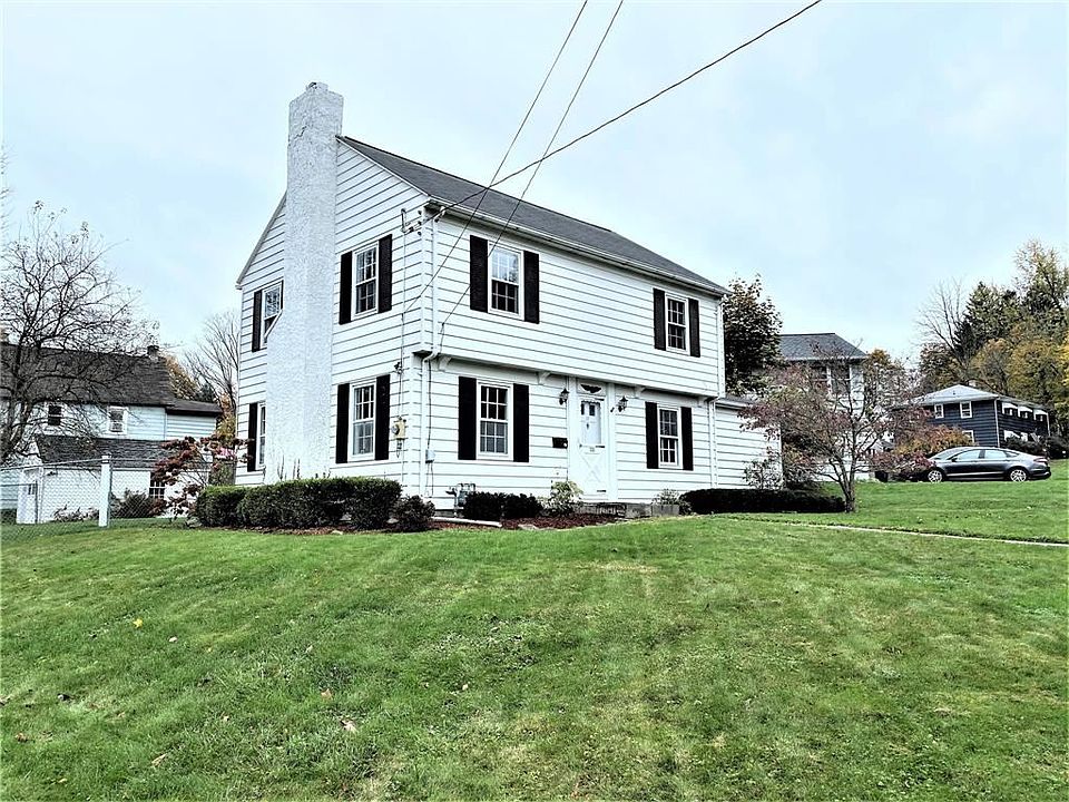 Lovely, comfortable 2 two story home. Large living room with fireplace and french door. Features 4 bedrooms, with the master bedroom on the first floor. Basement has a finished, wood paneled den/family room with dry bar. Unfinished basement area has hookups for washer/dryer, storage (shelves, cabinets), workbench. A security system is present. Hardwood throughout most of the home. Detached single car garage. Shed. Fenced yard. Landscaping. This is a must see.