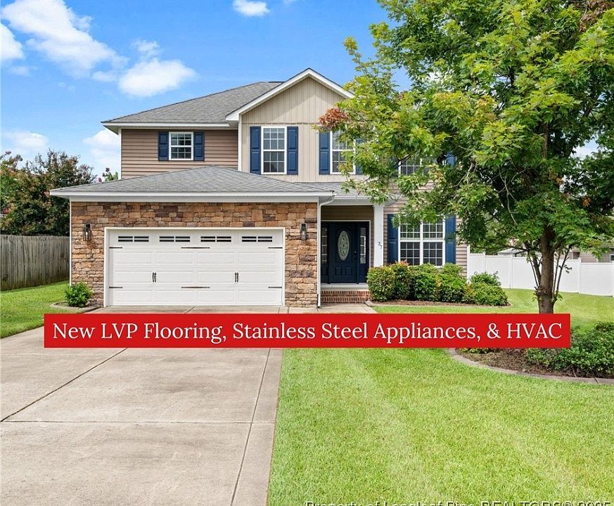 New HVAC in 2022! Step inside to find fresh LVP flooring, plush carpet, and beautifully updated bathrooms throughout this 4 Bedroom, 2.5 Bath home in Lexington Plantation. The inviting foyer leads you into a spacious living area with a cozy fireplace. The modern kitchen features NEW stainless steel appliances, a functional center island, and open flow to the dining room—ideal for family meals or entertaining guests. The main-level primary suite is a true retreat with a trey ceiling, jetted tub, double vanity, and large walk-in closet. Upstairs, a generous loft provides extra living space, along with three bedrooms—each offering its own walk-in closet for ample storage. Outside, enjoy the privacy of a cul-de-sac location, a fully fenced yard with a deck for grilling or gatherings, and a 2-car garage. Take advantage of community amenities including a pool, clubhouse, fitness center, and playground. Conveniently located near Fort Bragg, shopping, dining, and Fayetteville—this home truly checks all the boxes!